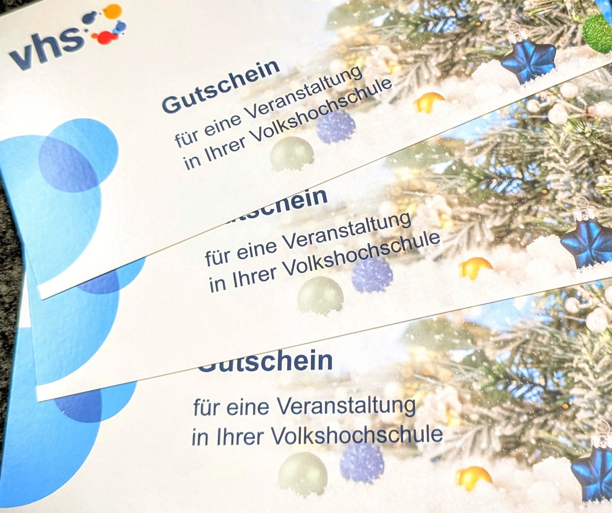 Ein Gutschein der vhs Zirndorf ist das ideale Weihnachtsgeschenk für alle, die Neues ausprobieren, kreativ werden oder sich etwas Gutes tun möchten. Flexibel einlösbar – und immer persönlich.