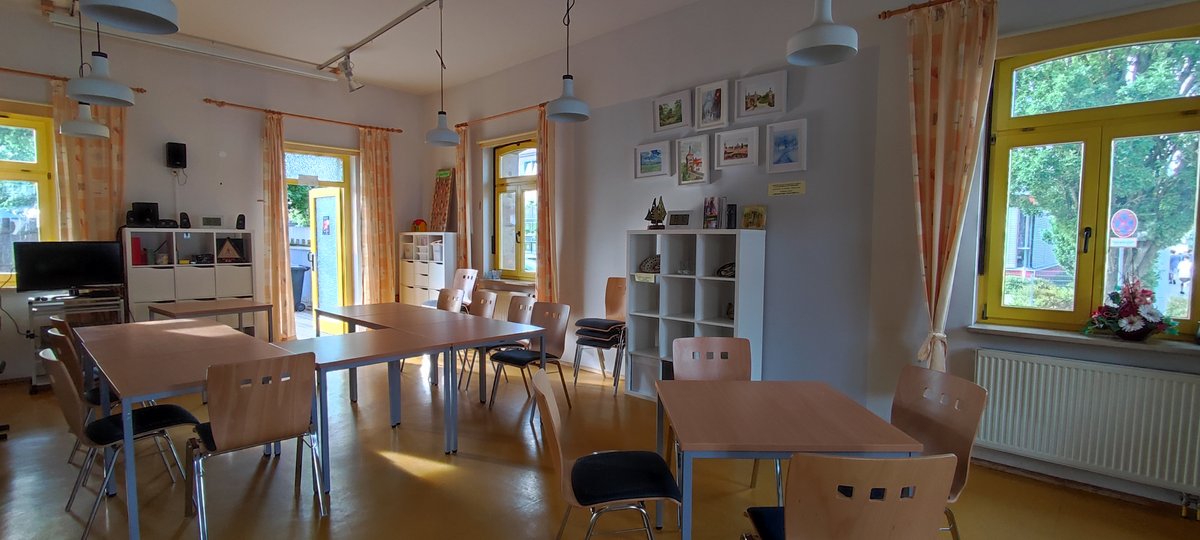 Auch finden Sie hier einen hellen, gemütlichen Gemeinschaftsraum für bis zu 40 Personen mit angeschlossener Küche.
