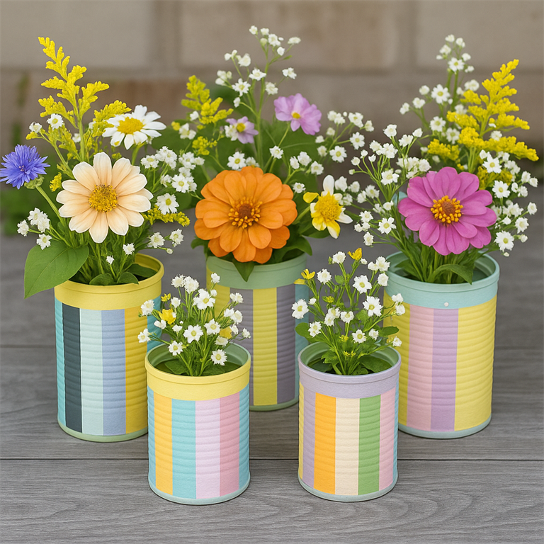 Wir sprühen und bemalen mit Acrylfarben Konservendosen und schenken ihnen so ein zweites Leben als Blumenvase, Pflanzen- oder Kräutertopf.